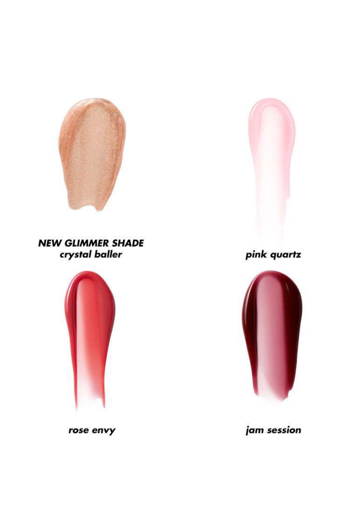 • NEW Lip Oil Glimmer in Crystal Baller – an ultra-glossy champagne and crystal pearl tinted lip oil with a glimmering finish